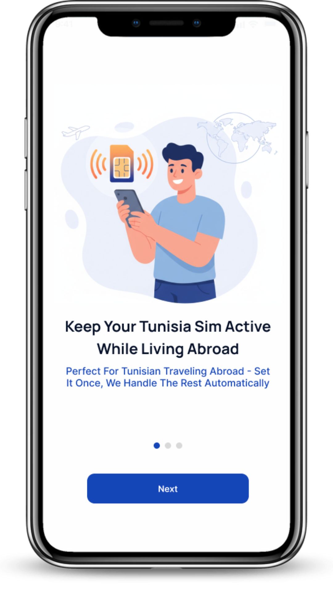 The ultimate peace of mind for Tunisian expatriates. We automatically top-up your SIM card every 3 months, ensuring your number stays active no matter where you are in the world.